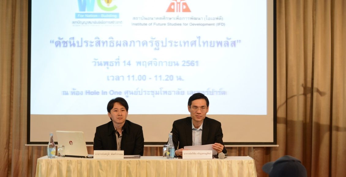 นายทวีชัย เจริญเศรษฐศิลป์ ผู้อำนวยการวิจัย สถาบันอนาคตศึกษาเพื่อการพัฒนา (ไอเอฟดี) แถลงข่าวผลการจัดทำ ดัชนีประสิทธิผลภาครัฐประเทศไทยพลัส (Thailand’s Public Sector Effectiveness Index Plus) ประจำไตรมาส 4 ปี 2561
