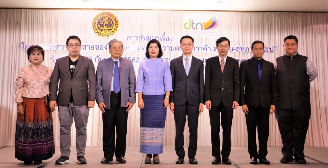 นายทวีชัย เจริญเศรษฐศิลป์ ผู้อำนวยการวิจัยสถาบันอนาคตศึกษาเพื่อการพัฒนา ร่วมเป็นวิทยากรงานสัมมนา “โอกาสและความท้าทายของไทยในการเจรจาความตกลงการค้าเสรีไทย-สหภาพยุโรป” เปิดเวทีโดยนางอรมน ทรัพย์ทวีธรรม อธิบดีกรมเจรจาการค้าระหว่างประเทศ กระทรวงพาณิชย์ ณ โรงแรมอนันตรา สยาม กรุงเทพฯ เมื่อวันที่ 23 กันยายน 2562 ที่ผ่านมา ซึ่งสถาบันอนาคตศึกษาเพื่อการพัฒนาได้ร่วมขับเคลื่อนในด้านโครงการศึกษาวิจัย วิเคราะห์ประโยชน์และผลกระทบจากการฟื้นการเจรจาเอฟทีเอไทย-อียู