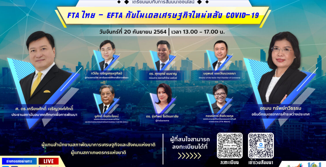 📣กรมเจรจาการค้าระหว่างประเทศขอเชิญผู้สนใจลงทะเบียนรับฟังการสัมมนาออนไลน์ เรื่อง “FTA ไทย-EFTA กับโมเดลเศรษฐกิจใหม่หลัง COVID-19” 🇮🇸🇱🇮🇳🇴🇨🇭