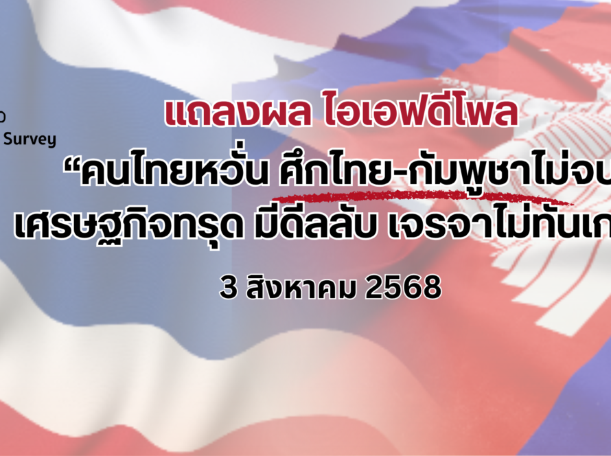 IFD Poll, การเมืองสิงหาคม 3, 2025ไอเอฟดีโพลชี้! “คนไทยหวั่น ศึกไทย-กัมพูชาไม่จบ เศรษฐกิจทรุด มีดีลลับ เจรจาไม่ทันเกม”
