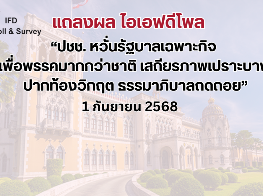 IFD Poll, การเมืองกันยายน 1, 2025ไอเอฟดีโพลชี้! “ปชช. หวั่นรัฐบาลเฉพาะกิจ เพื่อพรรคมากกว่าชาติ เสถียรภาพเปราะบาง ปากท้องวิกฤต ธรรมาภิบาลถดถอย”