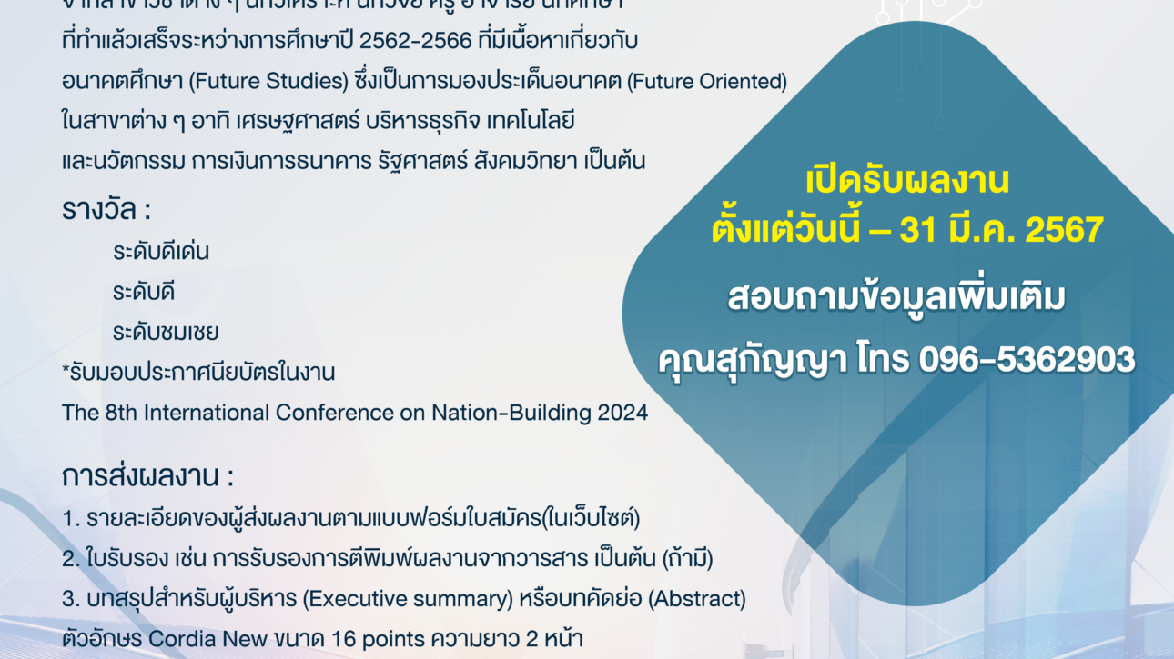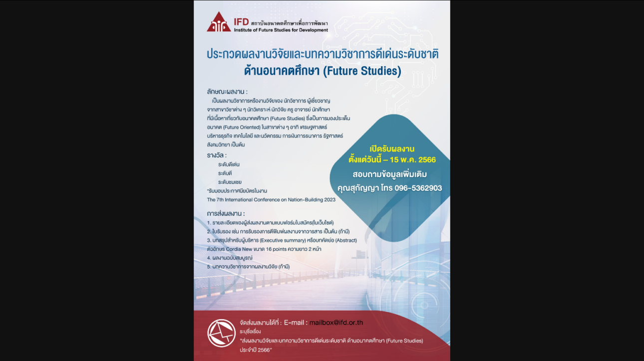 ประกวดผลงานวิจัยและบทความวิชาการดีเด่นระดับชาติ ด้านอนาคตศึกษา (Future Studies)