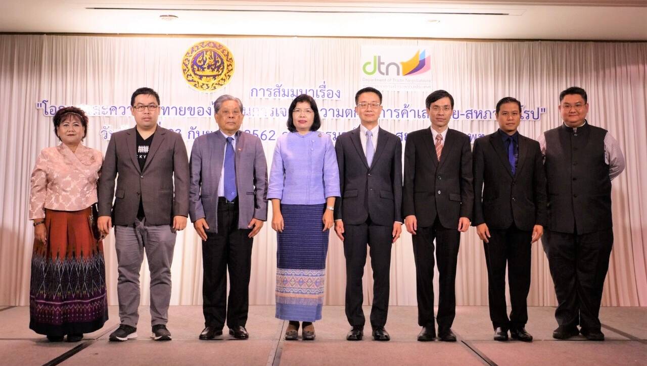 สถาบันอนาคตศึกษาเพื่อการพัฒนา โดยนายทวีชัย เจริญเศรษฐศิลป์ ผู้อำนวยการวิจัยของสถาบันฯ จัดสัมมนานำเสนอผลการศึกษาวิจัยเรื่อง "ผลกระทบจากการจัดทำความตกลงการค้าเสรีระหว่างไทย-สหภาพยุโรป" โดยกรมเจรจาการค้าระหว่างประเทศได้มอบให้ทีมวิจัยของสถาบันอนาคตศึกษาเพื่อการพัฒนา หรือ ไอเอฟดี ดำเนินการศึกษาวิจัยตั้งแต่กลางปีที่ผ่านมา การจัดสัมมนาครั้งนี้ได้รับเกียรติจาก นายรัชวิชญ์ ปิยะปราโมทย์ อัครราชทูต (ฝ่ายการพาณิชย์) คณะผู้แทนถาวรไทยประจำองค์การการค้าโลก และองค์การทรัพย์สินทางปัญญาโลก ผู้แทนอธิบดีกรมเจรจาการค้าระหว่างประเทศ กล่าวเปิดงาน เมื่อวันพฤหัสบดีที่ 21 พฤศจิกายน 2562 ณ โรงแรมวินเซอร์ สวีทส์ กรุงเทพมหานคร