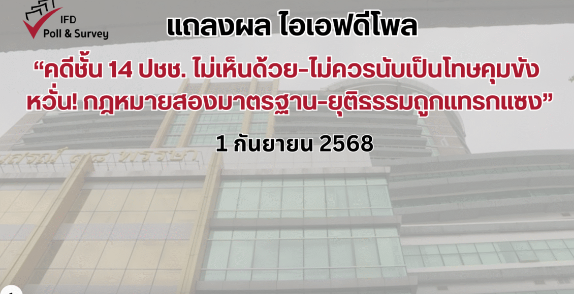 ไอเอฟดีโพลชี้! “คดีชั้น 14 ปชช. ไม่เห็นด้วย–ไม่ควรนับเป็นโทษคุมขัง หวั่น! กฎหมายสองมาตรฐาน–ยุติธรรมถูกแทรกแซง”